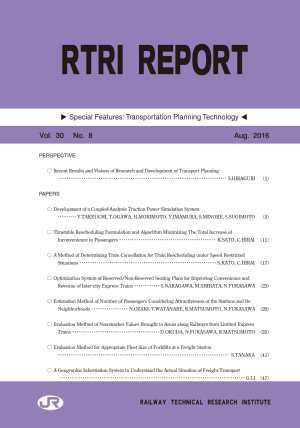RTRI REPORT is a monthly journal of research papers. Special feature in the current issue is "Transportation Planning Technology."