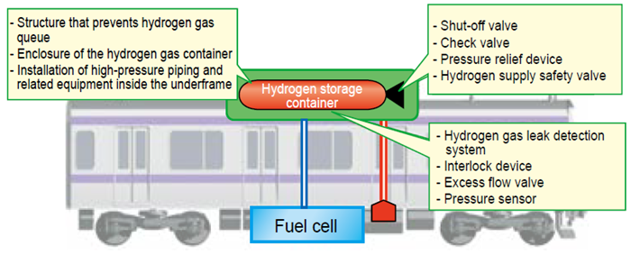 For the social implementation of hydrogen fuel cell multiple units, it is necessary to establish technical regulatory standards in regulations and ordinances that allow the installation of hydrogen fuel as high-pressure gas on board without requiring special approvals or permits. To that end, it is necessary to conduct a risk assessment of hydrogen fuel cell multiple units in advance.