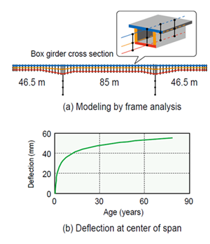 Because this method can flexibly respond to construction and maintenance conditions, it contributes to the advancement of design methods for long-term deformation of bridges caused by concrete shrinkage. It is expected to be used for proposing rational new structural types that control the effects of shrinkage and creep, as well as for reducing maintenance.