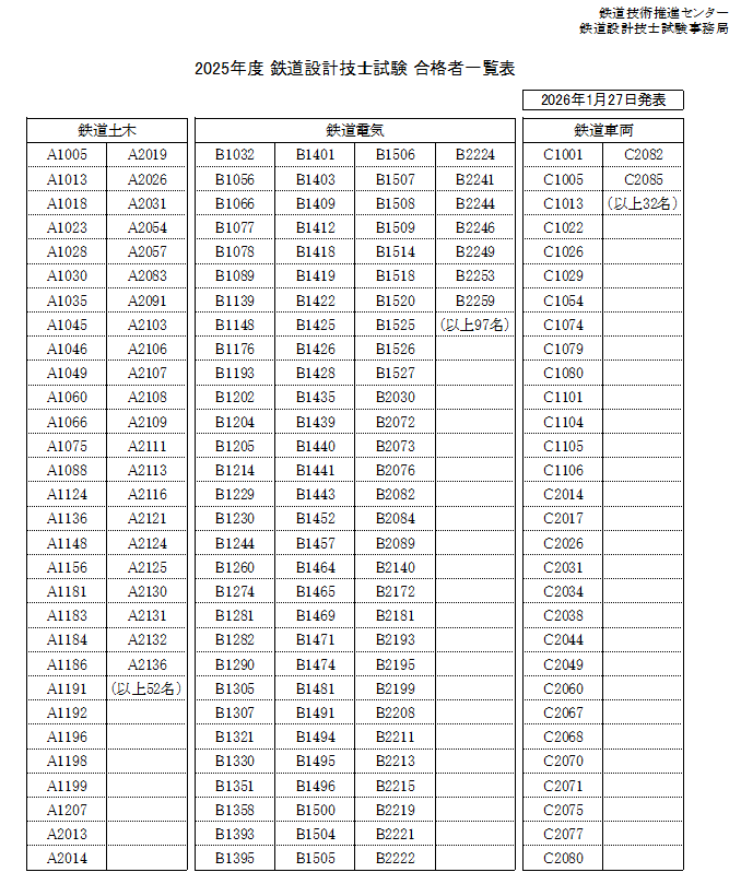 2025年度鉄道設計技士試験合格発表