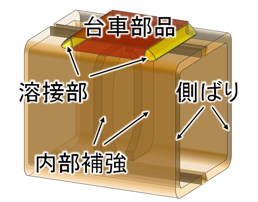 従来の超音波探傷法では、台車枠の溶接内部や車軸と車輪とのはめ合い部におけるきずの有無の判断が困難でした。そこで、きずの見落としを防ぎ台車の安全性の向上を図ることを目的として、アレイ探触子を用いた最新の超音波映像化技術できずを高精度に検出する手法を開発しています。