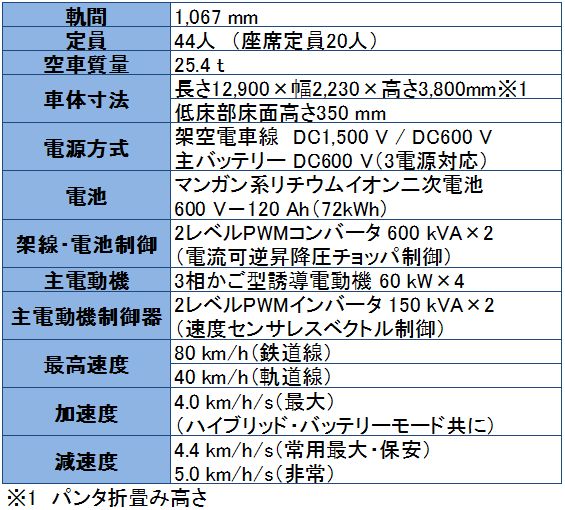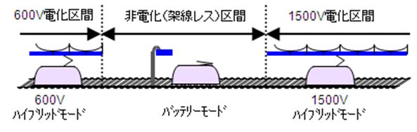- 600kW級の車載バッテリーによる架線レス走行