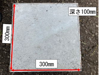・コンクリート供試体の寸法は、縦300mm×横300mm×深さ100mmです(図1)。