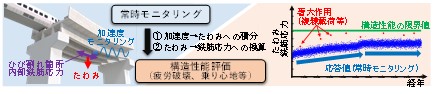 小型で常設可能な加速度モニタリングに本アルゴリズムを適用することにより、例えば列車通過時に共振するような橋りょうに対して、多大な労力をかけずに構造性能の定量的な評価や補修・補強の要否判断を実施できます(図2)。