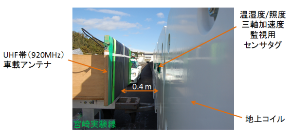 超電導磁気浮上式鉄道用地上コイルは、数が膨大で、長期間の屋外使用となります。 当研究室では、効率的に保守管理を行うため、RFID技術(無線による識別技術 Radio Frequency Identification)を利用した地上コイル保守管理手法を開発しました。 管理対象となる地上コイルには、安価なRFIDタグや、状態監視用センサを接続したセンサタグを設置します。保守作業員は携帯端末により、管理対象の識別やセンサのログ情報の確認ができます。また、保守用車両にアンテナを搭載することで、連続的に配置されたタグの情報を、時速50km程度で走行しながら収集できます(図2)。 なお、本装置は浮上式鉄道用地上コイルだけではなく、鉄道設備の保守管理に幅広く適用が可能です。