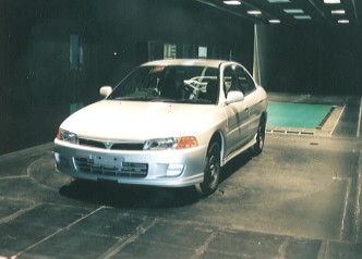 The windward wind tunnel has 6-component pyramidal balance installed under the turntable (4m).It's used to measure the aerodynamic force that works on train models and actual automobiles