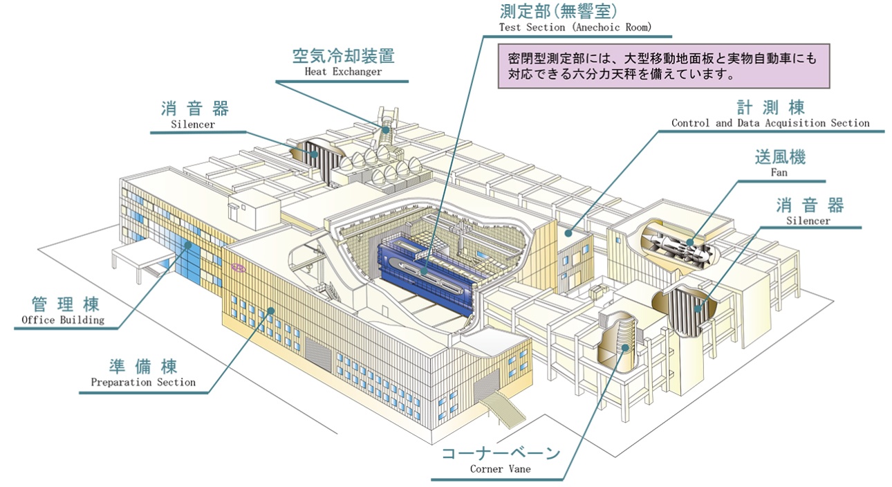 密閉型測定部(幅5.0m×高さ3.0m)で300km/h