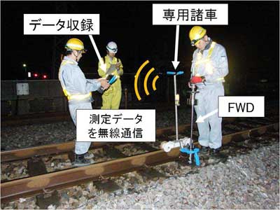 バラスト軌道は,列車の繰返し荷重によって沈下が生じるため,定期的に線形を検測し,必要に応じてタイタンパーやマルチプルタイタンパー(以下,MTT)等により補修を行っています。軌道補修後の品質管理は,施工後の軌道の仕上り線形によって行われており,バラストの強度や締固め密度などの力学的な管理は行われておらず,バラストの締固め具合は作業者の技量に依存しているのが現状です。そこで,鉄道総研では,軌道補修の高品質化を目的とし,FWD1),2)(Falling Weight Deflectometer)を用いた軌道補修後の力学的な施工管理方法(以下,軌道支持剛性評価方法)の開発3)を進めています。