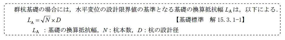 なお、ここでの「各杭が一体として挙動する構造」とは、例えば部材剛性が比較的高いラーメン高架橋において部材の断面力が最大耐力以下に留まる作用レベルに限って、各杭が一体で挙動するものと判断できるものとします。