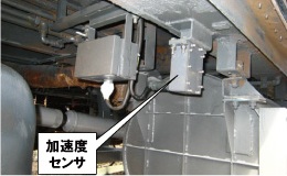 開発した装置は,2011 年3 月に営業運転を開始したJR九州の観光特急列車「指宿のたまて箱」に搭載され,営業運転が行われています(図9)。鉄道車両で上下振動制御装置が営業列車に搭載されたのは,この列車が初めてです。装置搭載後,まもなく2年が経過しようとしていますが,大きなトラブルもなく順調に稼働しています。また,このほかにも,2012 年から特急「はやとの風」にもこの装置が搭載さており,地方交通線の上下乗り心地向上に貢献しています。