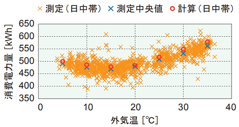 ある営業路線を対象として営業時間帯での消費電力量測定結果と本シミュレーターによる推定計算結果を比較し、これまでは20〜10%程度であった精度に対して5%以内の精度で実際の傾向を再現でき、大幅な性能向上を確認しました(図2)。