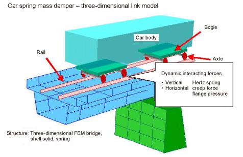 Specifically, under the vertical constitutive law, the contact force of the wheels and rail is evaluated using Hertz's contact spring, at the same time as the jumping from the rails of the wheels can also be considered.