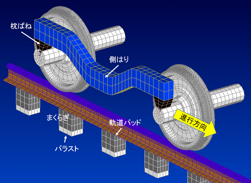 車輪/レール間の接触面で生じる衝撃荷重の影響を評価可能な大規模並列計算ツールを開発します。